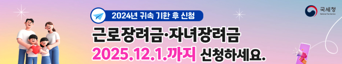근로·자녀장려금은 단순한 세금 환급이 아니라, 저소득 근로자와 가정의 생활 안정을 돕는 대표적인 복지 제도입니다. 올해는 12월 1일까지 기한후신청이 마감되므로, 아직 신청하지 않았다면 지금 바로 홈택스 또는 손택스에서 신청을 완료하시기 바랍니다.